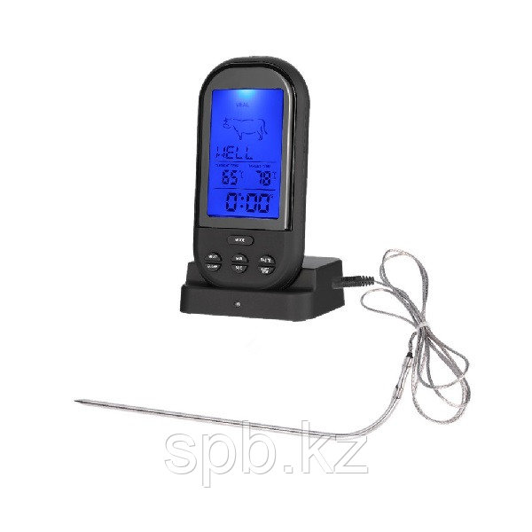 Прибор позволит вам четко и точно определить температуру на расстоянии до 30 метров. С помощью зонда, размещаемого в мясе, и приемника вы будете в режиме реального времени получать информацию о процессе приготовления мяса. Термометр имеет функции сигнала и таймера.